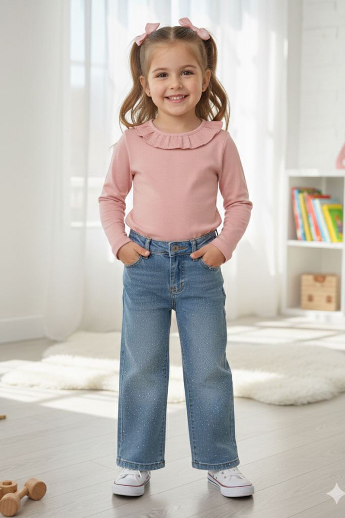 🌸 Taşlı Kız Çocuk Kot Pantolon