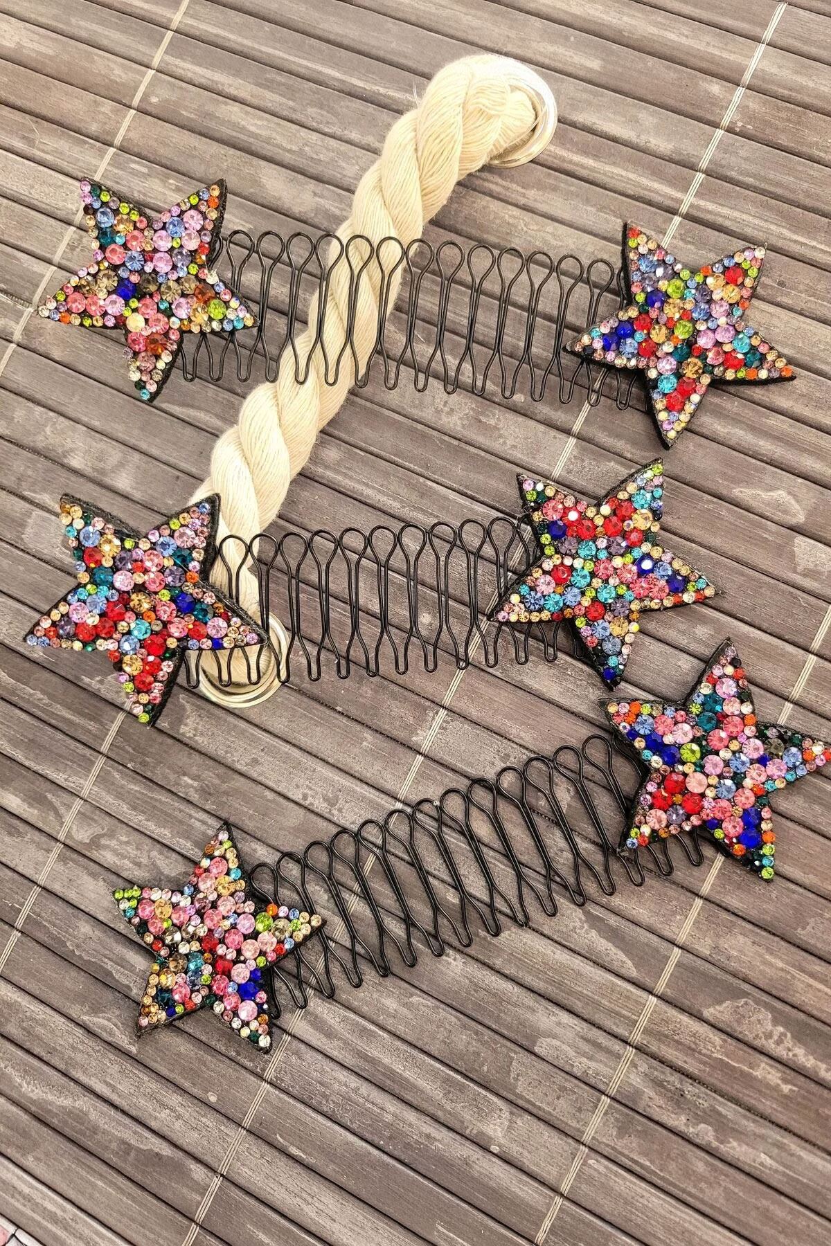 Işıltılı stilin tamamlayıcısı. Estetikle fonksiyonelliği buluşturan bu tokalarla saçlara yıldız dokunuşu yapın.