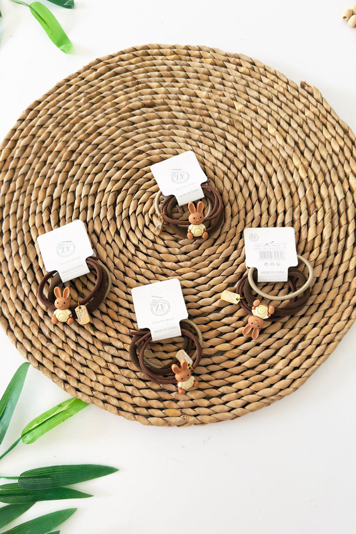Miniğimin Cicileri Tavşan Detaylı 3 lü Bağlama Saç Toka - Kahverengi