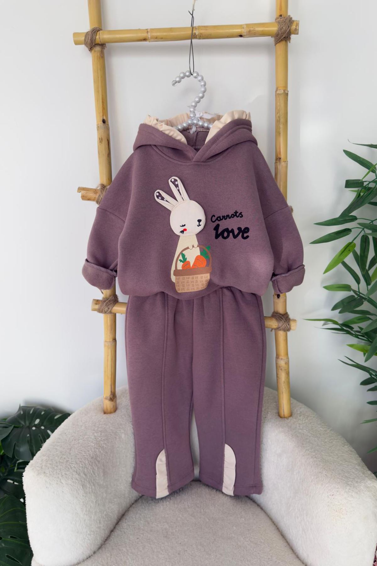 ✨ Ürün Özellikleri: 🐇 Tavşan figürlü sweatshirt, 3D kulak ve sepet detayıyla eğlenceli bir tasarıma sahiptir. 🧵 3 ip şardonlu kumaş, kalın ve yumuşak yapısıyla soğuk günlerde sıcacık tutar. 👖 Alt parça, elastik bel yapısıyla kolay giydirilir ve hareket konforu sağlar. 🎀 Kollarda ve paçalarda detaylı dikiş formu, sportif bir görünüm kazandırır. 🌟 Günlük kullanım ve dış mekân aktiviteleri için idealdir.