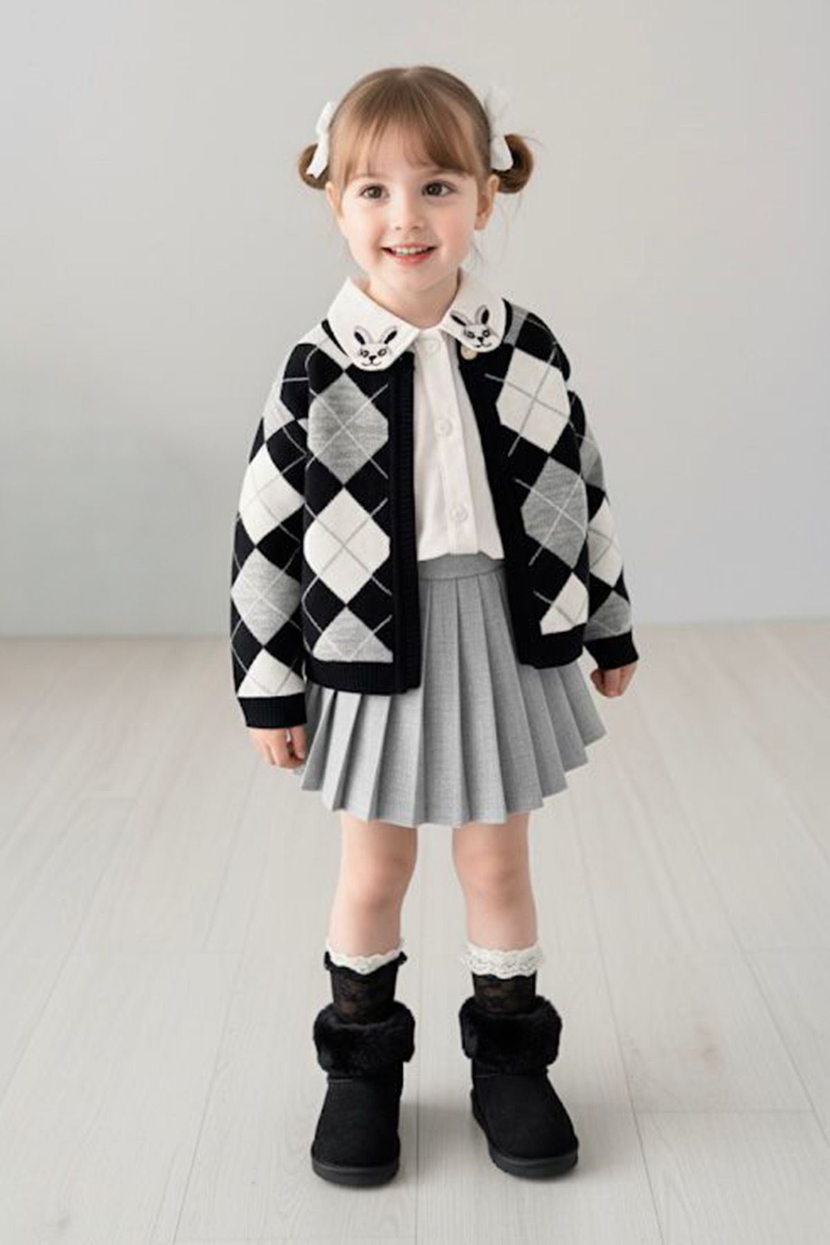 Zarif desenleri ve tatlı detaylarıyla küçük hanımlara özel tasarlandı! 💖 Tavşan işlemeli yakasıyla dikkat çeken bu üçlü takım, hem sıcak tutar hem de sevimli bir görünüm sunar.