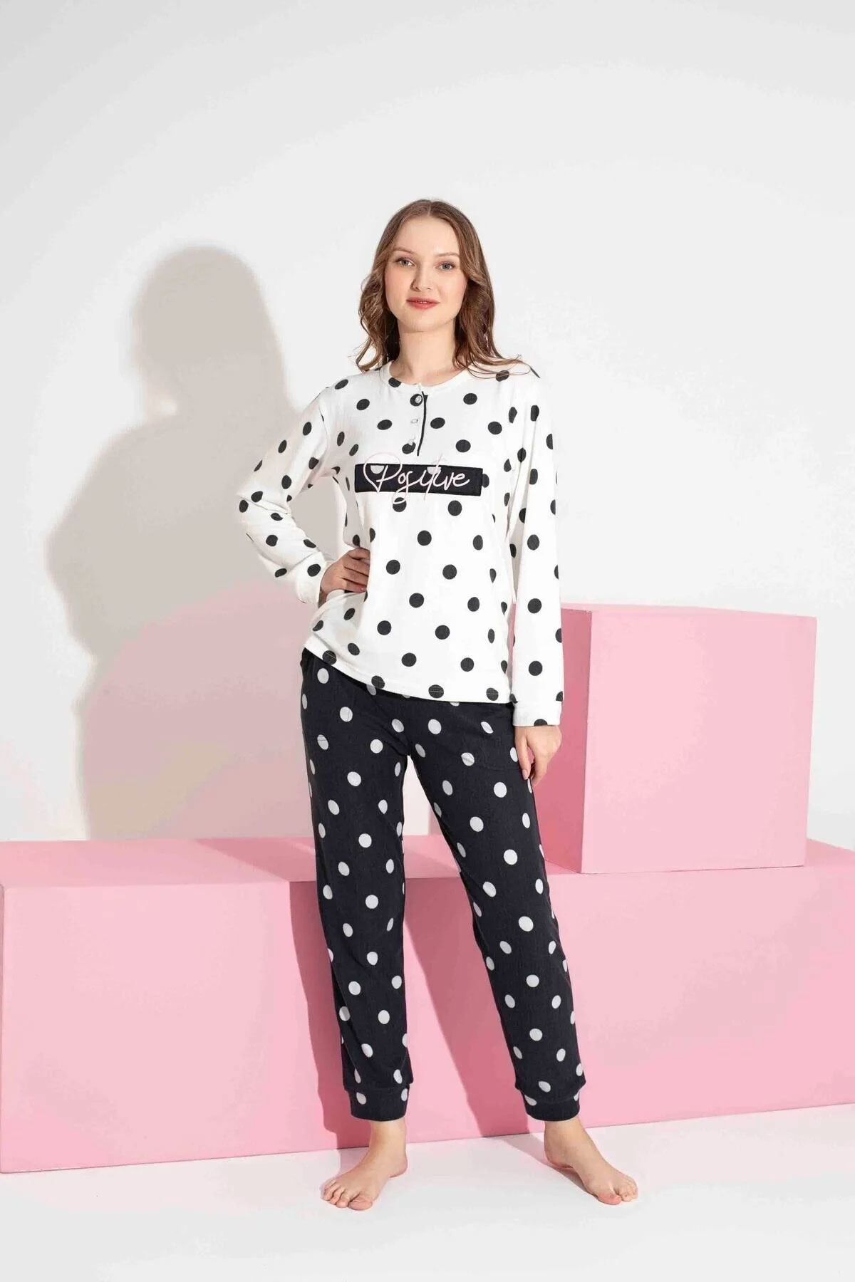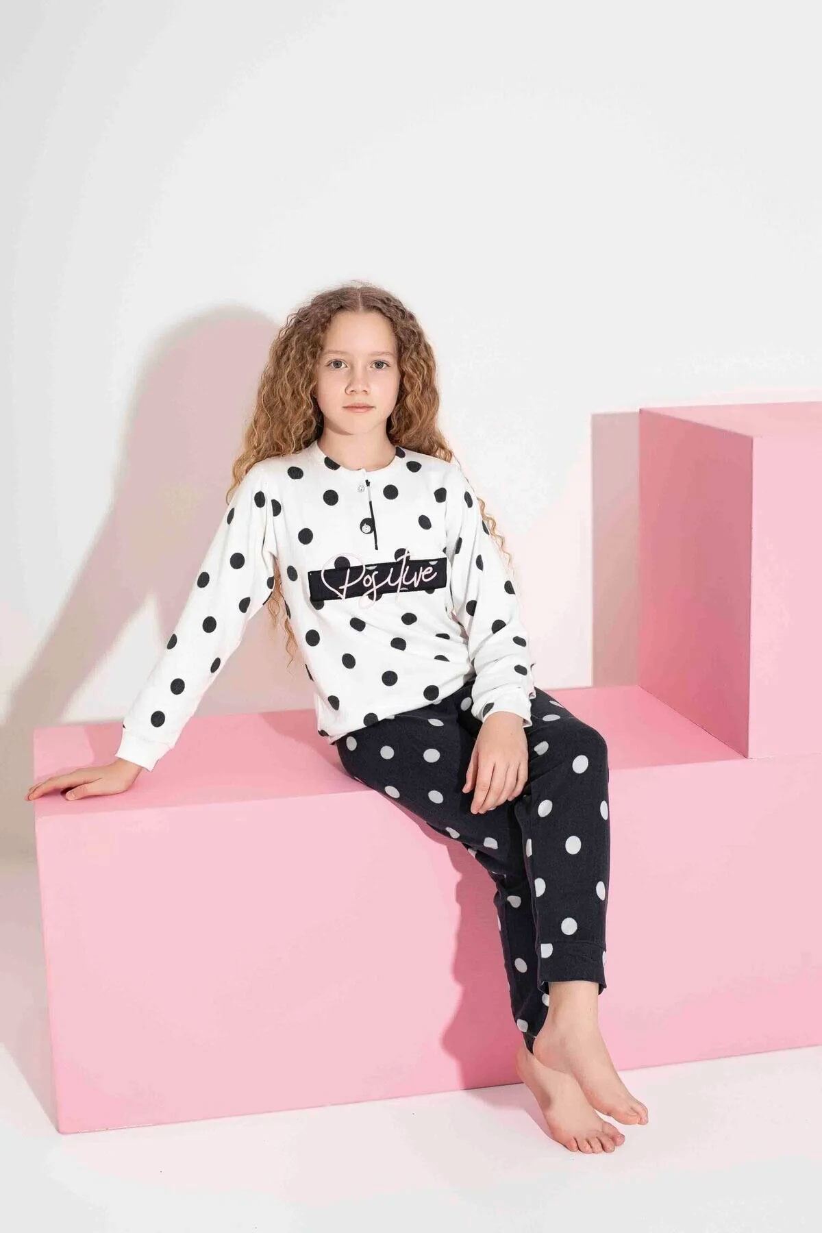 👧 Miniğimin Cicileri Termal Kumaş Puantiye Desenli Kız Çocuk Pijama Takımı – Siyah/Beyaz