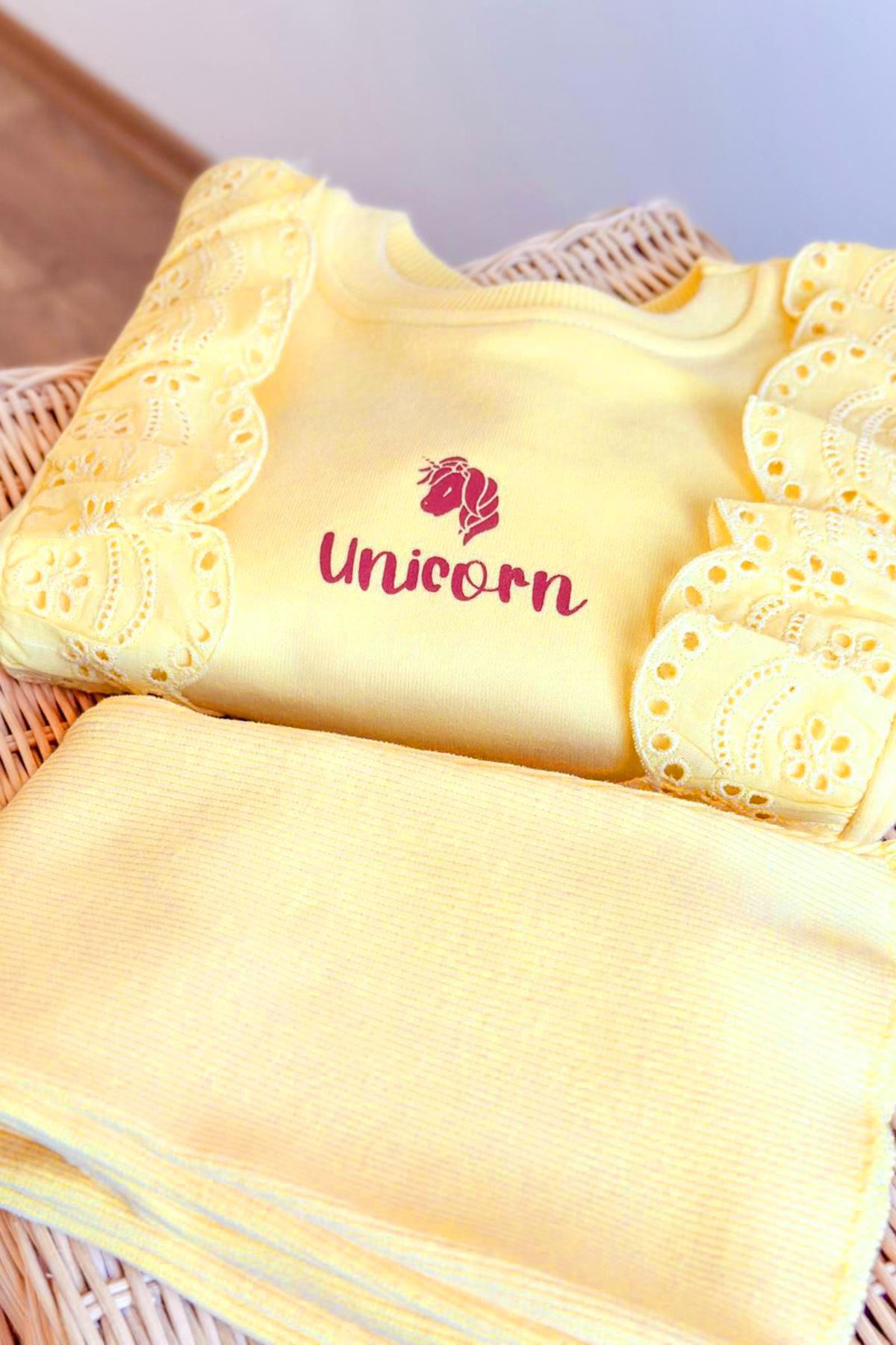 ✨ Ürün Özellikleri: – Üst kısmında dikkat çekici fisto detaylar – Unicorn yazı ve desen uygulaması – Esnek yapılı, konforlu tayt alt – Fırçalı pamuklu kumaştan üretilmiştir