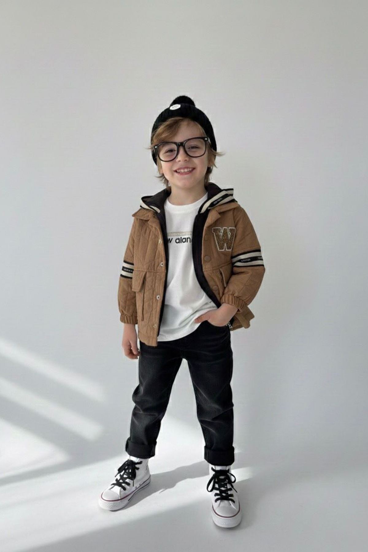 Şıklığı ve fonksiyonelliği tek kombin altında buluşturan bu 4’lü takım, minik beylerin günlük stiline modern bir dokunuş katar. Panç işleme detayı, kapüşonlu tasarım ve rahat kesim jean ile tamamlanan takım, hem konforlu hem de göz alıcı bir görünüm sunar.