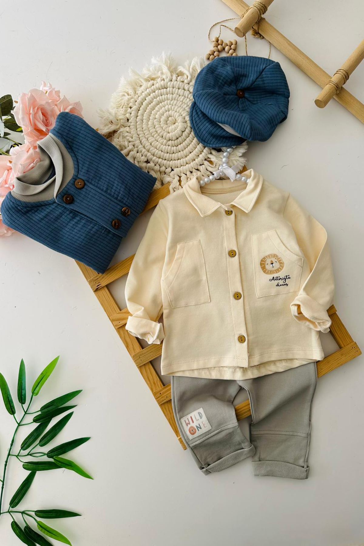 Miniğimin Cicileri Wild One Erkek Bebek 3’lü Pamuklu Ceketli Takım - Mavi