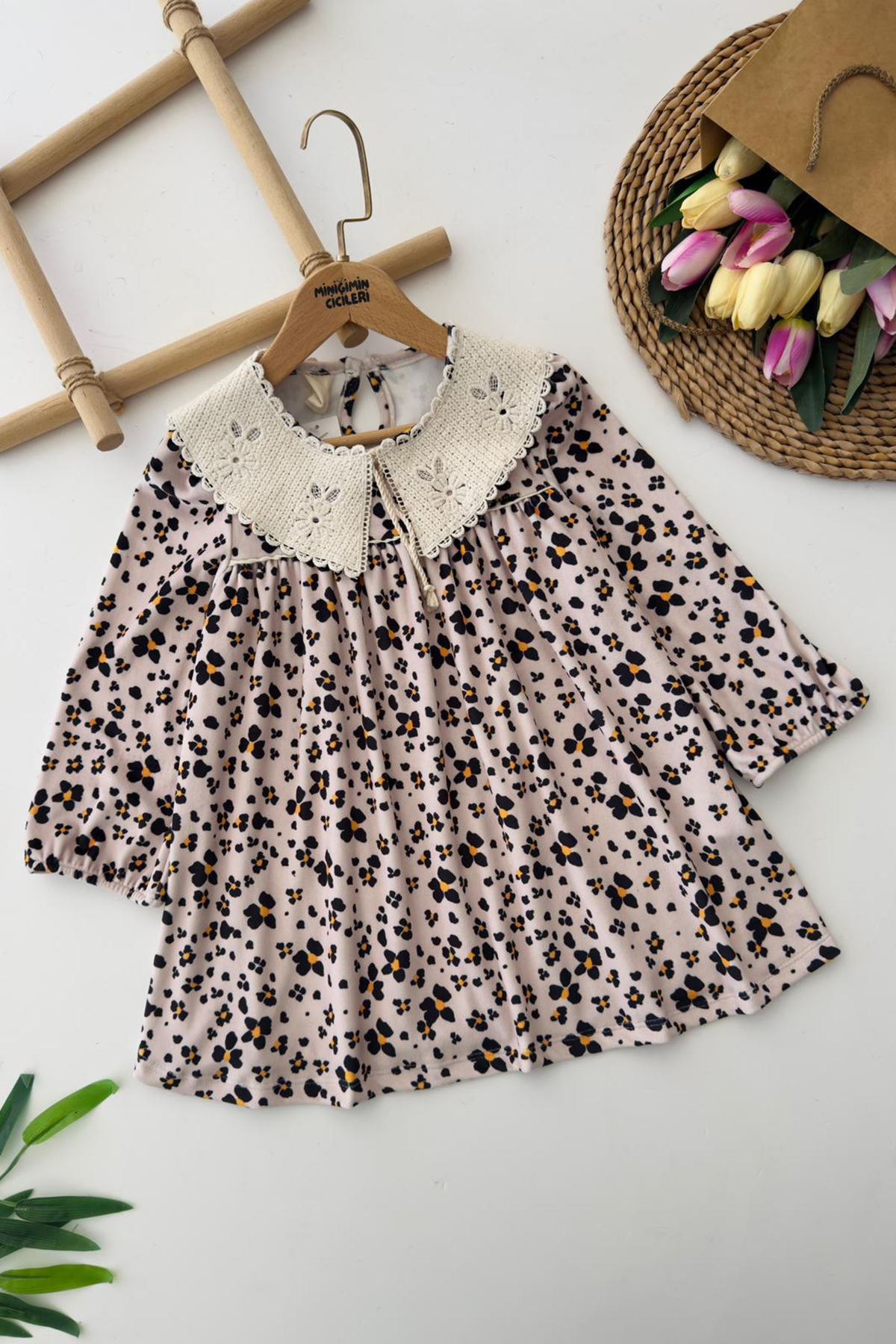 Şık dantel yakası ve zarif leopar deseniyle minik prenseslere hem modern hem de sevimli bir görünüm kazandırır. 👗✨🐆