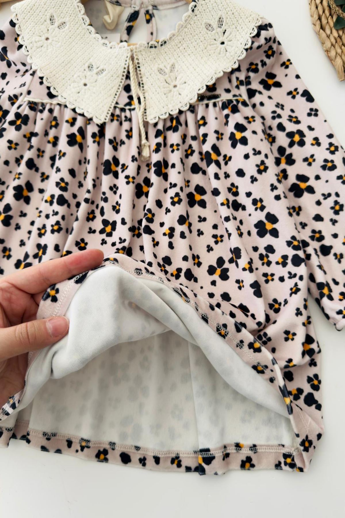🌸 Miniğimin Cicileri Yaka Dantel Detaylı Leopar Kadife Kız Elbise