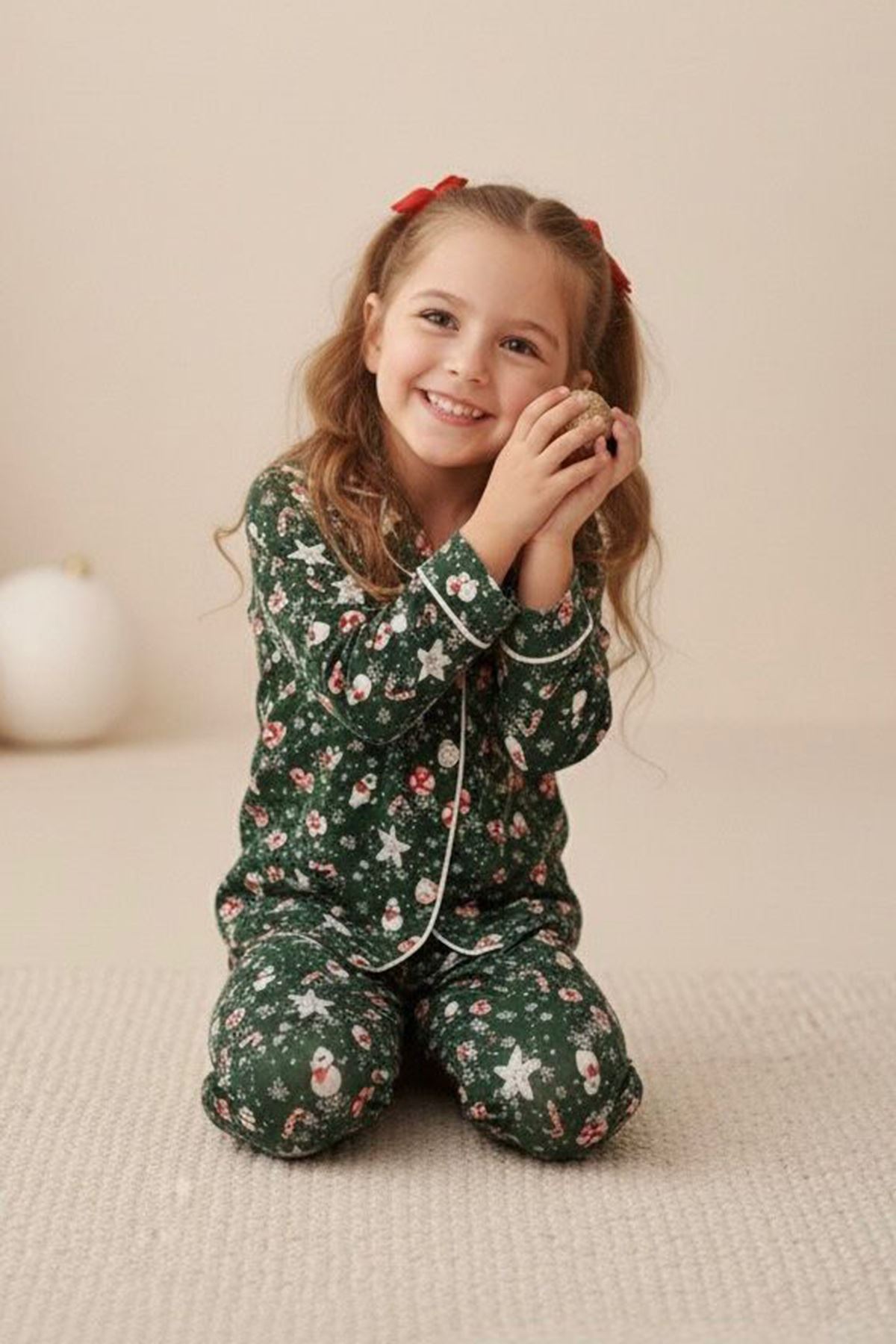 Yılbaşı temalı sevimli desenleriyle dikkat çeken, yumuşak süet dokulu pijama takımı miniklerin gecelerine konfor ve neşe katmak için tasarlanmıştır.