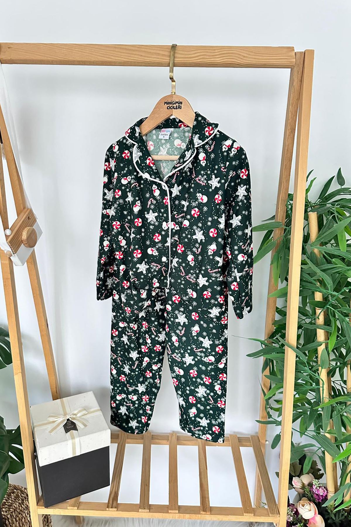 ❄️ Miniğimin Cicileri Yılbaşı Kardanadam Desenli Süet Kız Çocuk Pijama Takımı
