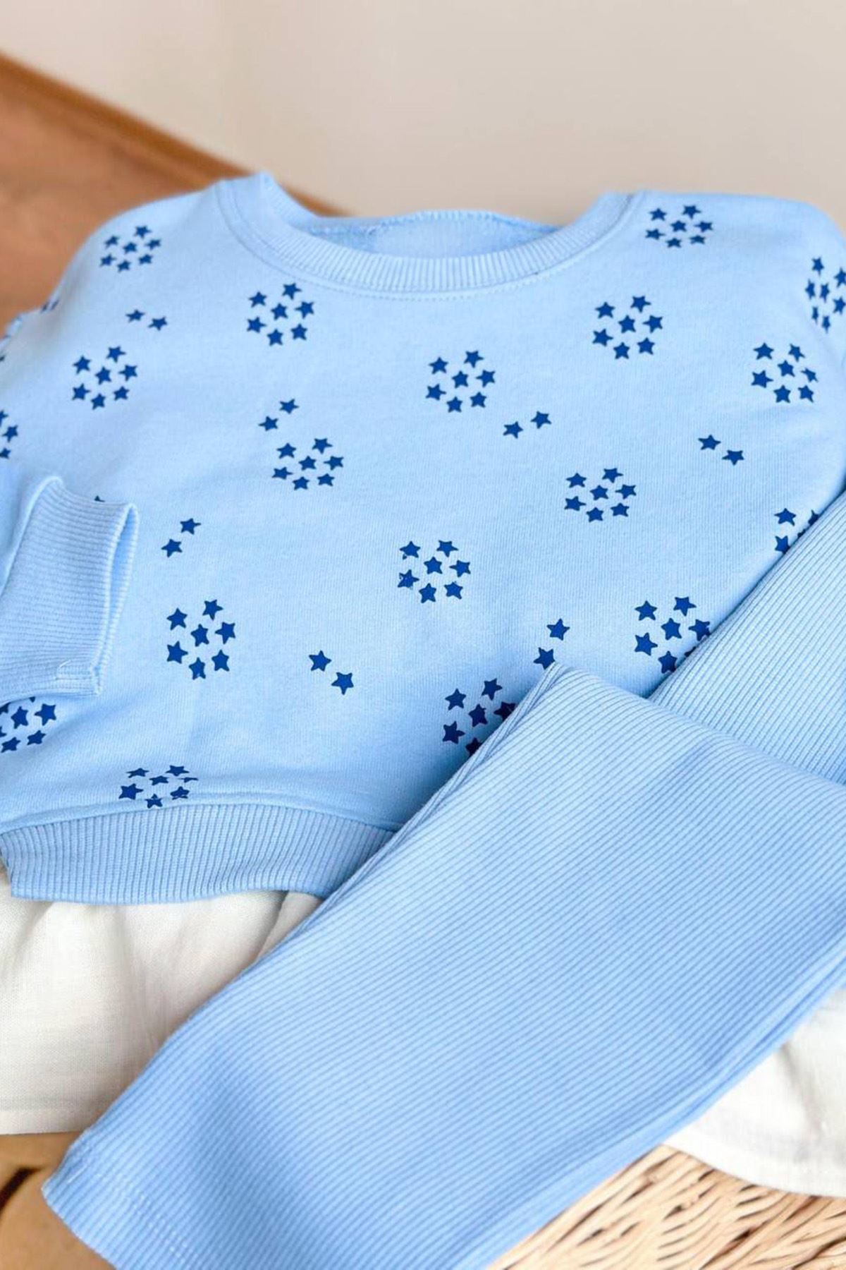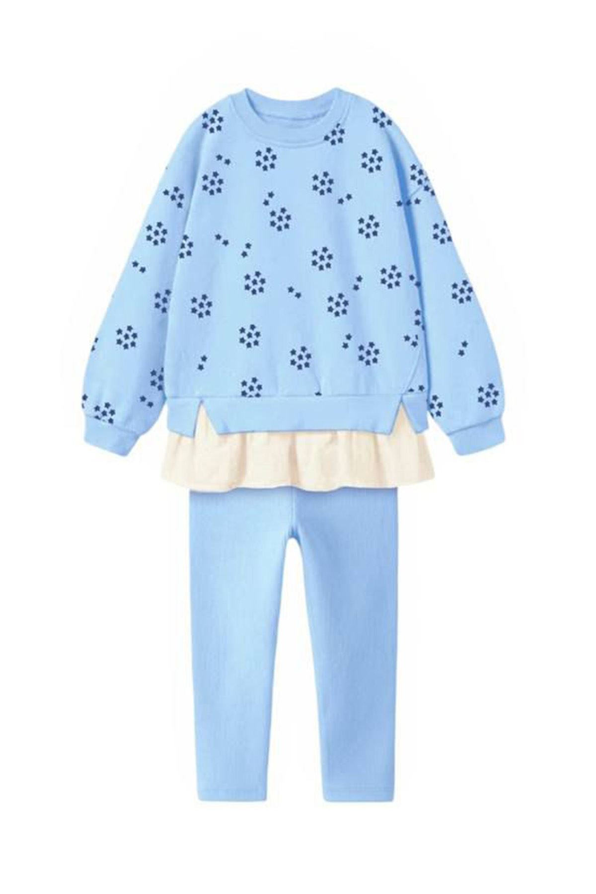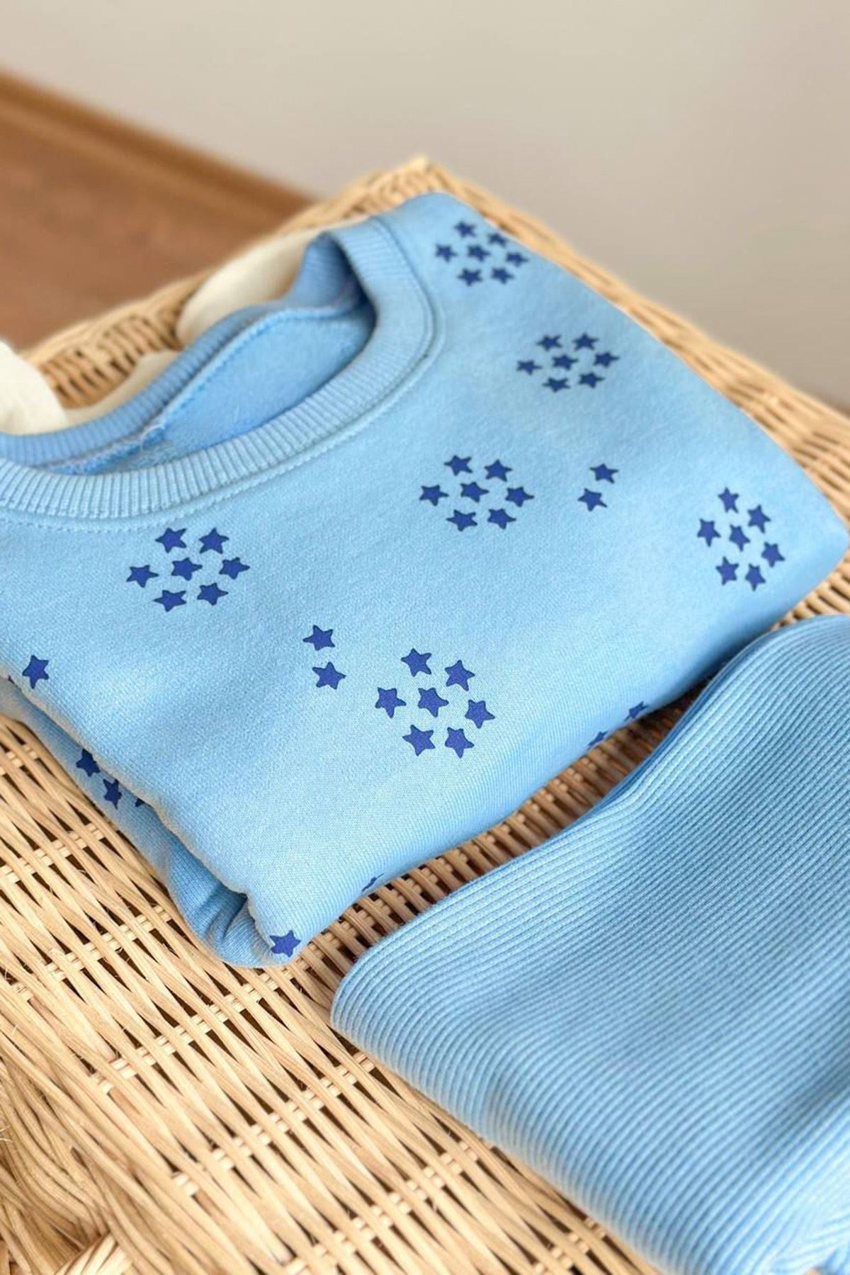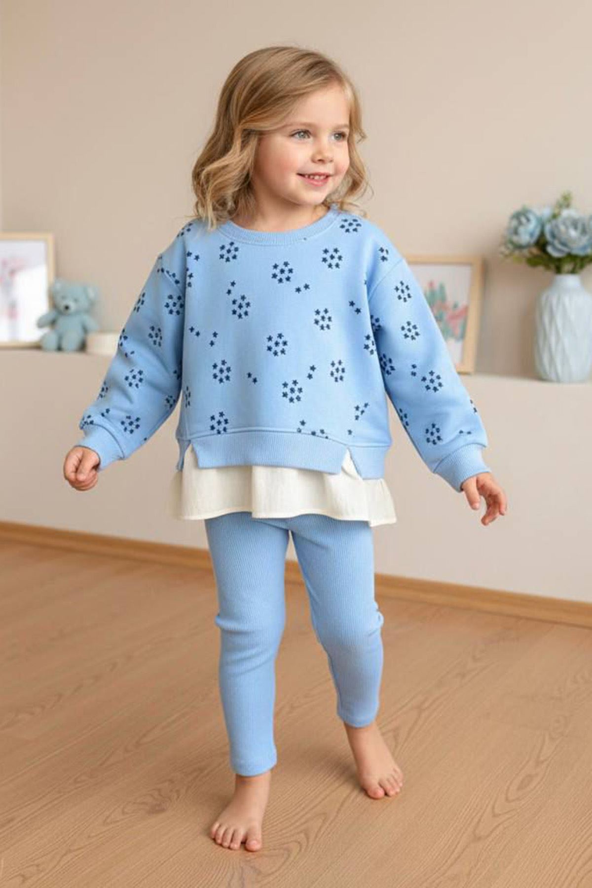 Gökyüzü kadar parlak ve sevimli bir stil! ⭐ Bu takım, yıldız baskıları ve kat detaylı tasarımıyla miniklerin enerjisini yansıtır. 🌟✨