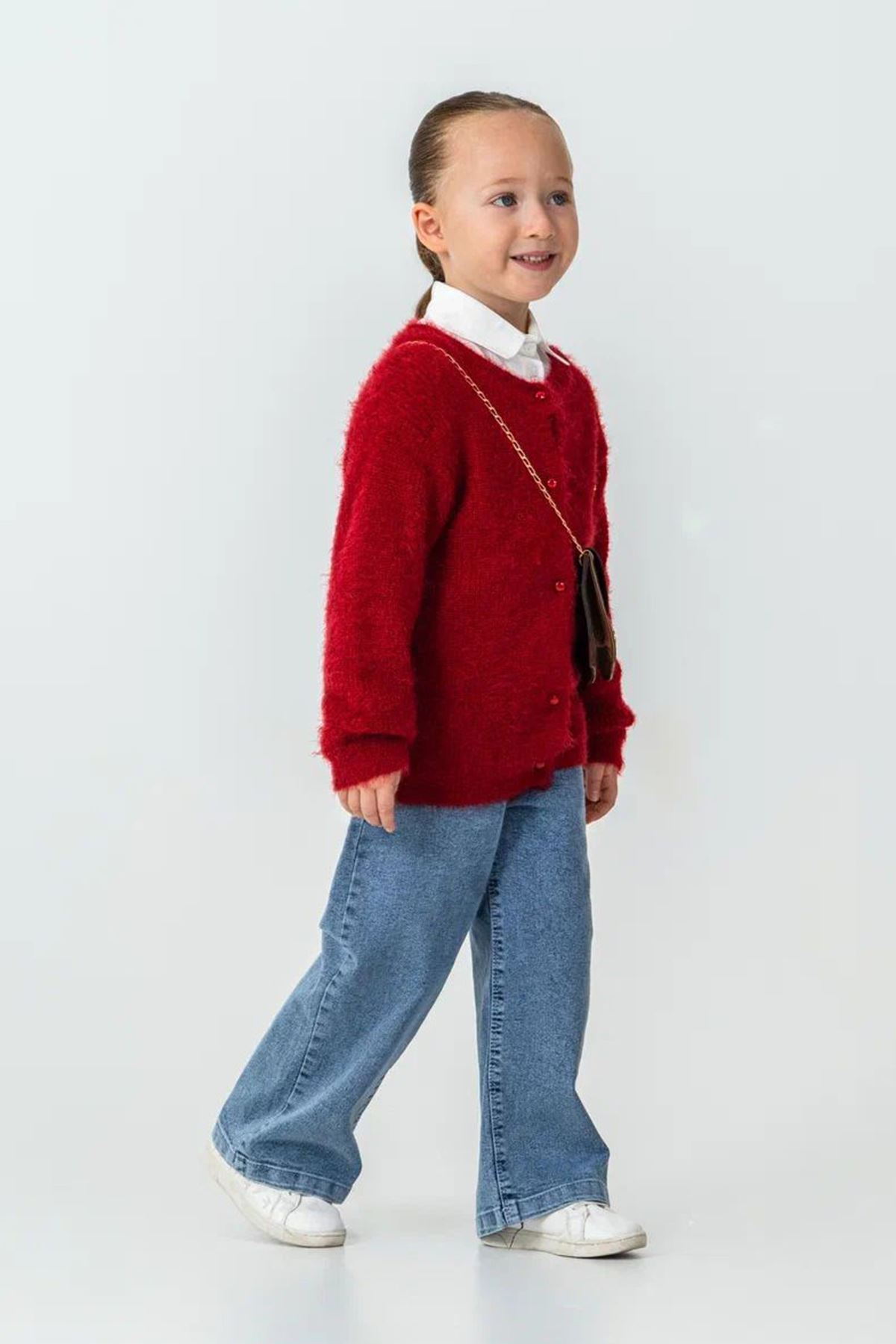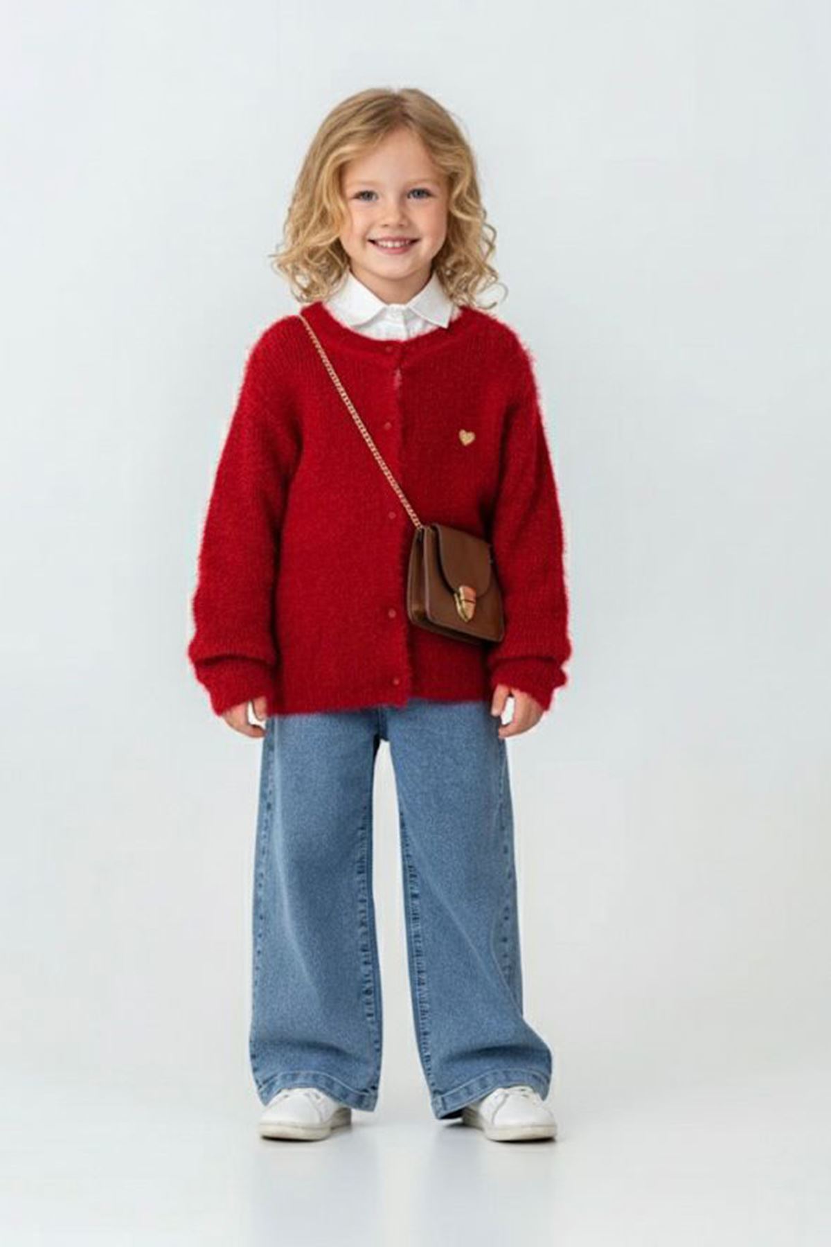 🔖 Miniğimin Cicileri Yumuşak Dokulu Kalp Detaylı Hırka ve Geniş Paça Jean Kız Çocuk Kombini