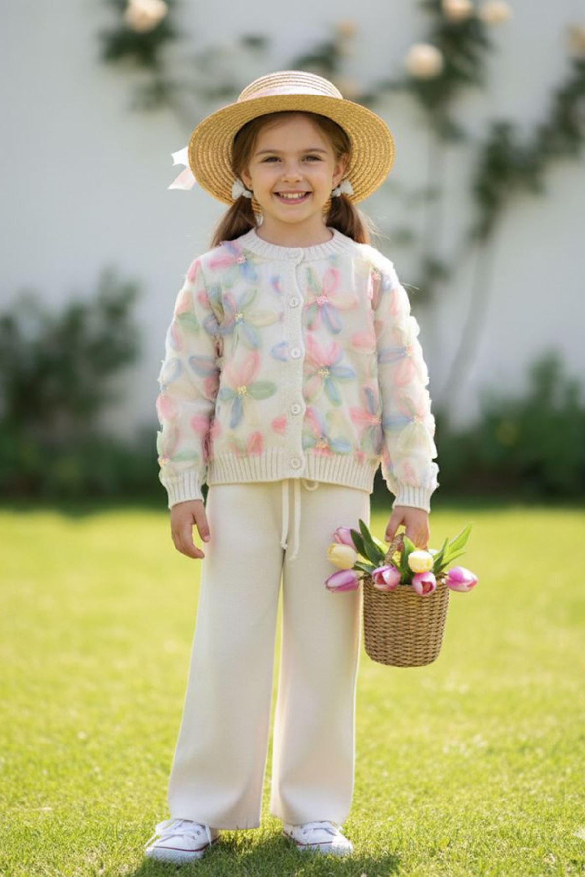 ✨ Ürün Özellikleri: 🌸 Zambak tül çiçek detaylı triko hırka, zarif ve üç boyutlu görünümüyle dikkat çeker. 👖 Rahat kesimli triko pantolon, esnek yapısıyla gün boyu konfor sağlar. 🧵 Tüylenme yapmayan kaliteli triko kumaş, uzun süre ilk günkü formunu korur. 🎀 Düğmeli üst tasarım, kolay giydirme ve çıkarma kolaylığı sunar. 🎨 Yumuşak renk tonlarıyla hem günlük kullanım hem de özel günler için uygundur.