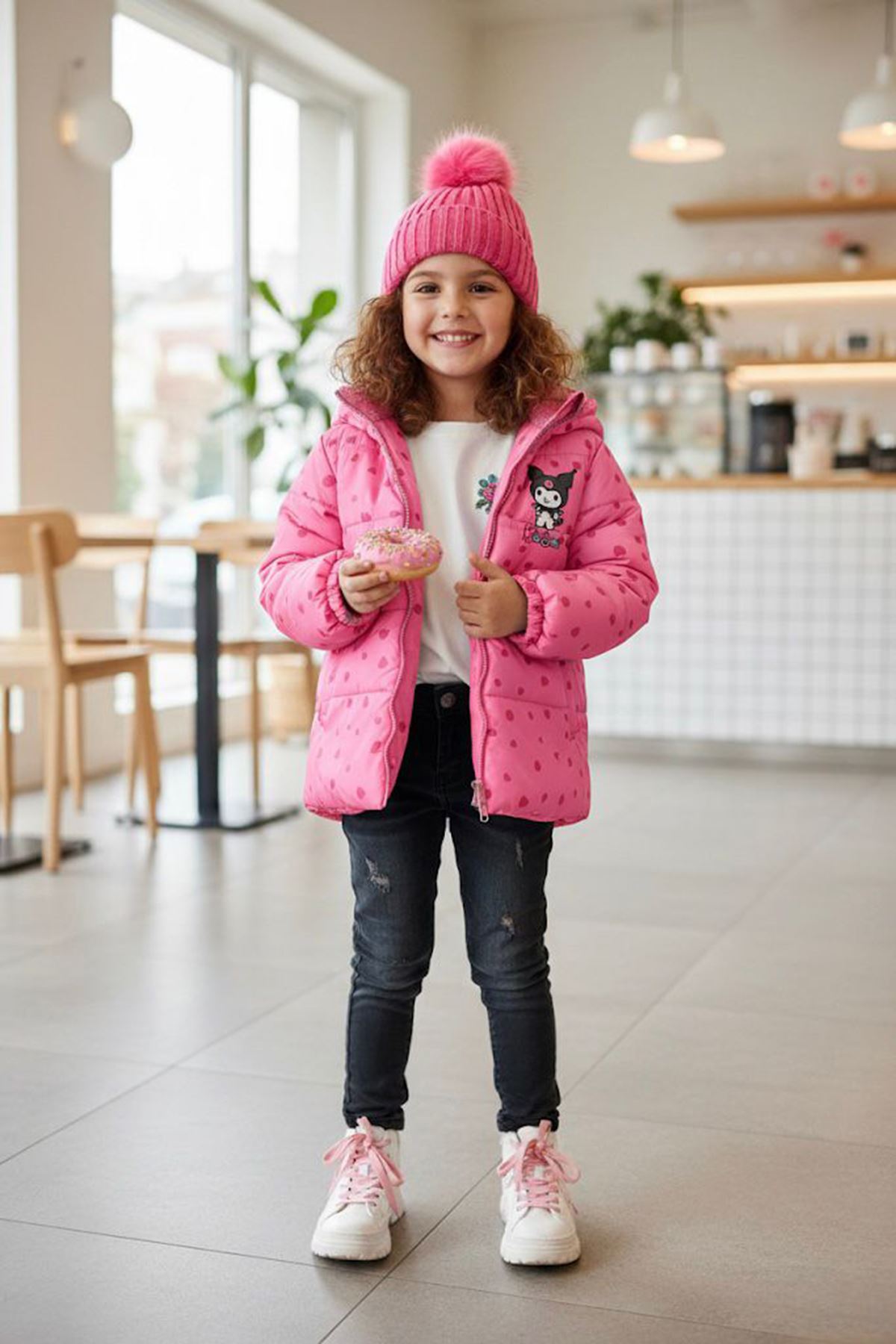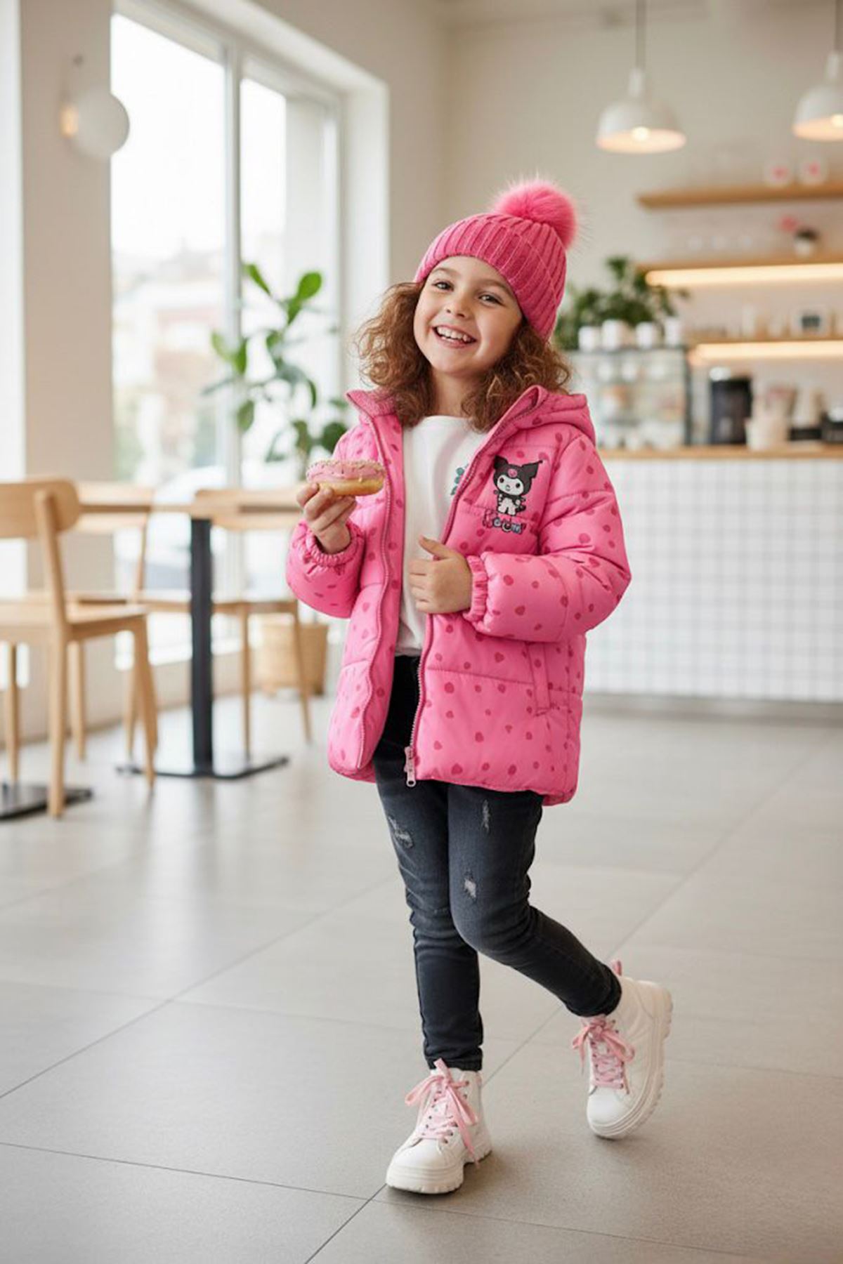 Sevimli kalp desenleri ve karakter baskısıyla tasarlanan bu mont, hem şık hem de rahat bir kullanım sağlar. Welsoft iç astarı sayesinde sıcak tutar ve serin havalarda miniklere konfor sunar. 💖🧥