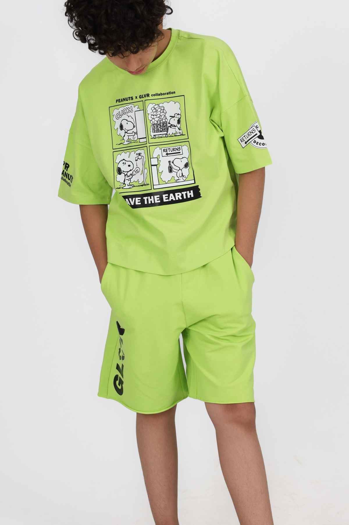 Yeşil Oversize Bisiklet Yaka Kısa Kollu Baskılı Şortlu Erkek Çocuk Takım